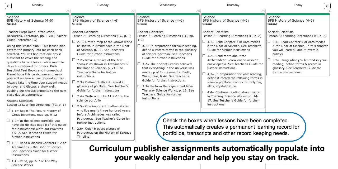 - A full year of detailed assignments for each Beautiful Feet Books Science curriculum.