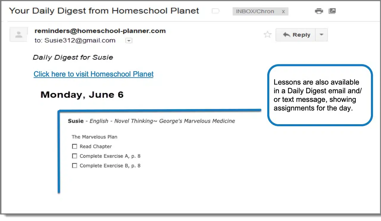 - “Daily Digest” email reminders to help you and your child stay on track