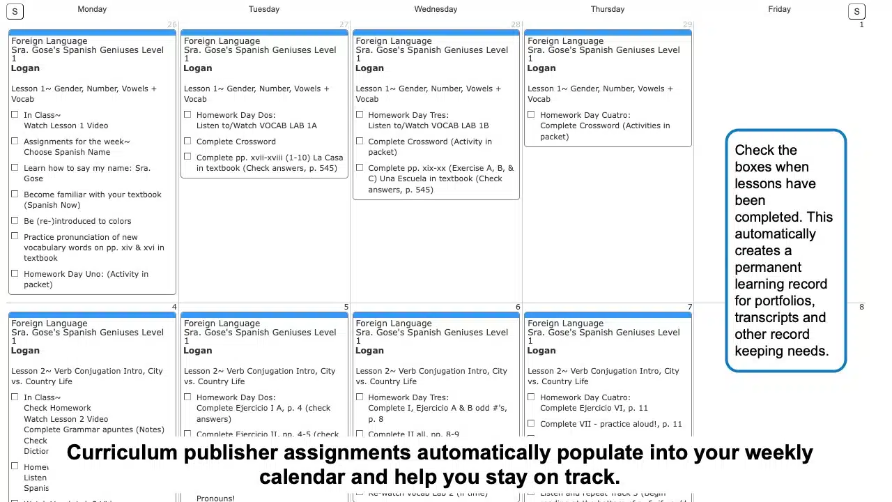 - One year of assignments and activities for your Sra. Gose's Spanish Geniuses curriculum in a convenient lesson plan.