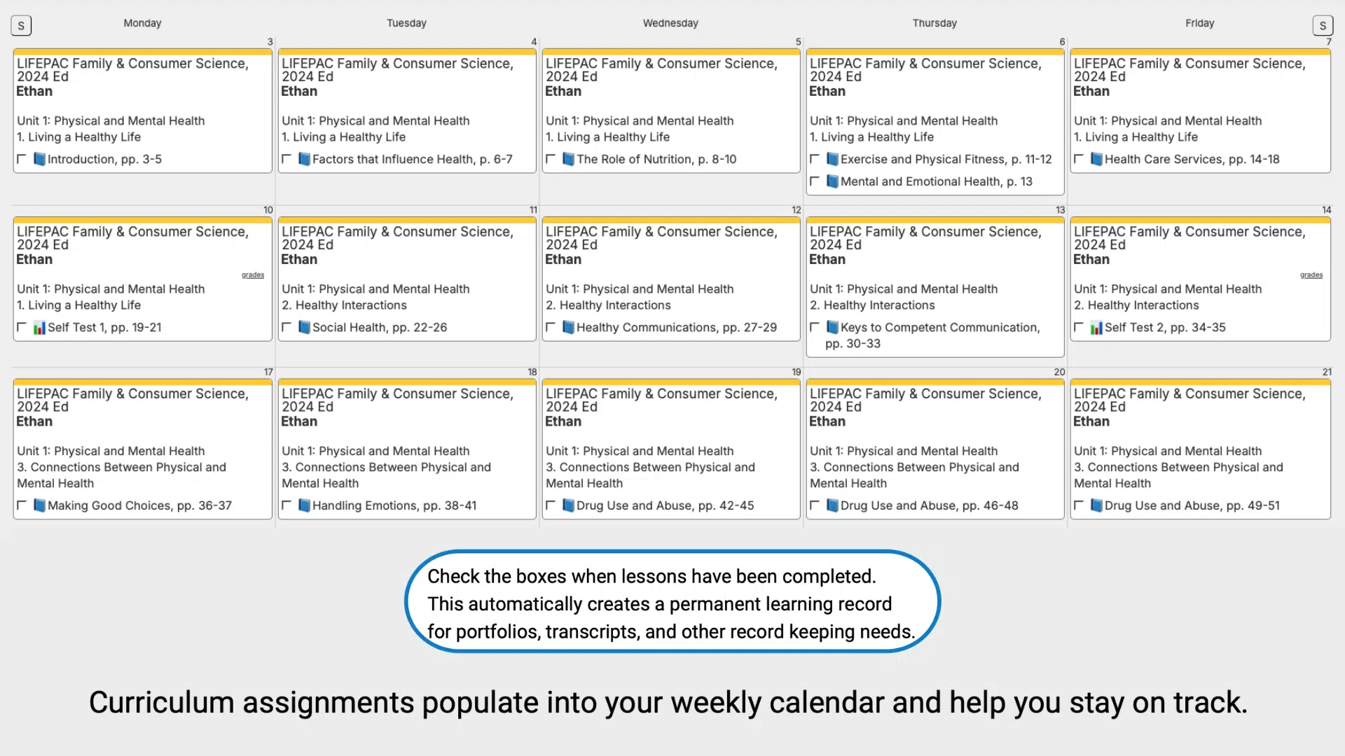 - Lesson plans covering all the assignments for your LIFEPAC Elective curriculum.