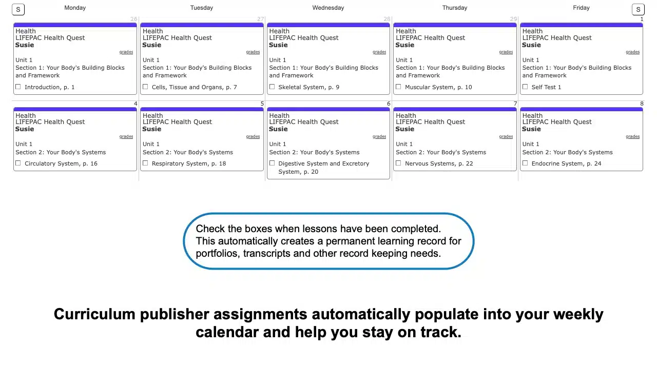 These integrated lesson plans for use within your Homeschool Planet calendar will help you stay on track in your LIFEPAC Health course.