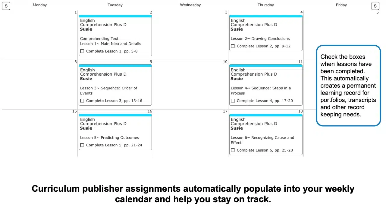 These lesson plans applied within your Homeschool Planet planner will help you stay on track in your MCP: Comprehension Plus course.