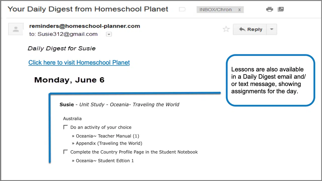 - “Daily Digest” email reminders to help you and your child stay on track